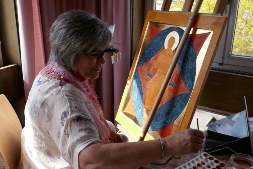 Meine Lehrerin, Margrit Kaderli, öffnete mir dann den Zugang zur Welt der Ikonen. Im Jahr 2000 fand ich in Magister Karl Abraham Selig im österreichischen Feldkirch einen grossartigen, sehr erfahrenen Ikonenmaler, dem ich sehr viel zu verdanken habe.